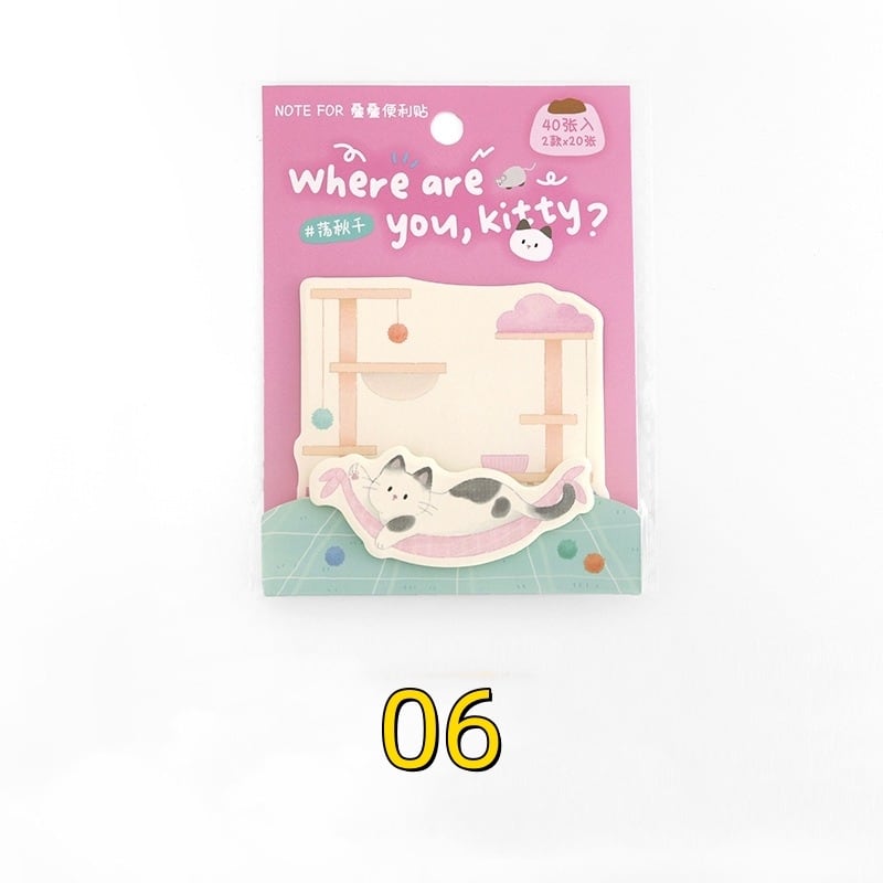 猫柄 ポストイット 付箋 2種類x各20枚入 (06桃色台紙)