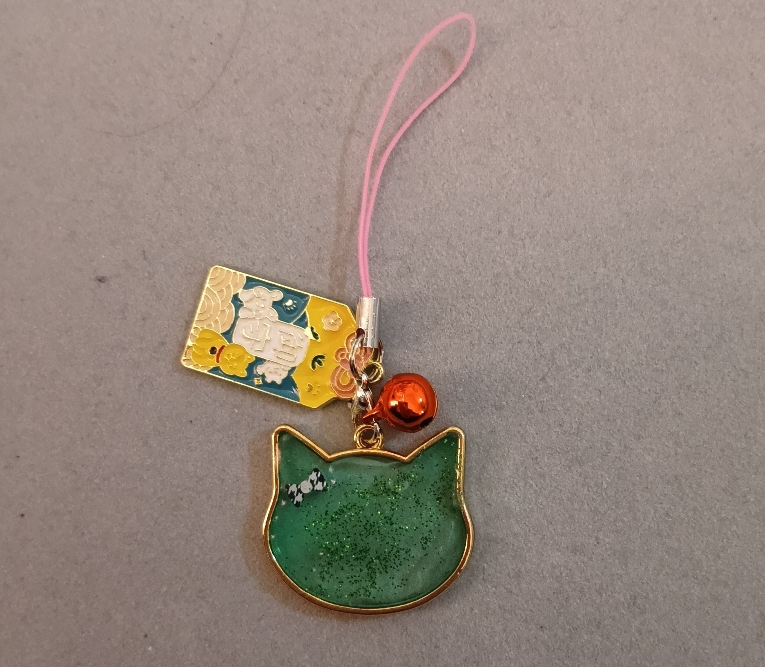 ひとちゃん作 猫ちゃんストラップ(チャーム) 『お正月バージョン2026』 (お守り、赤色すず付き、緑色)No.25